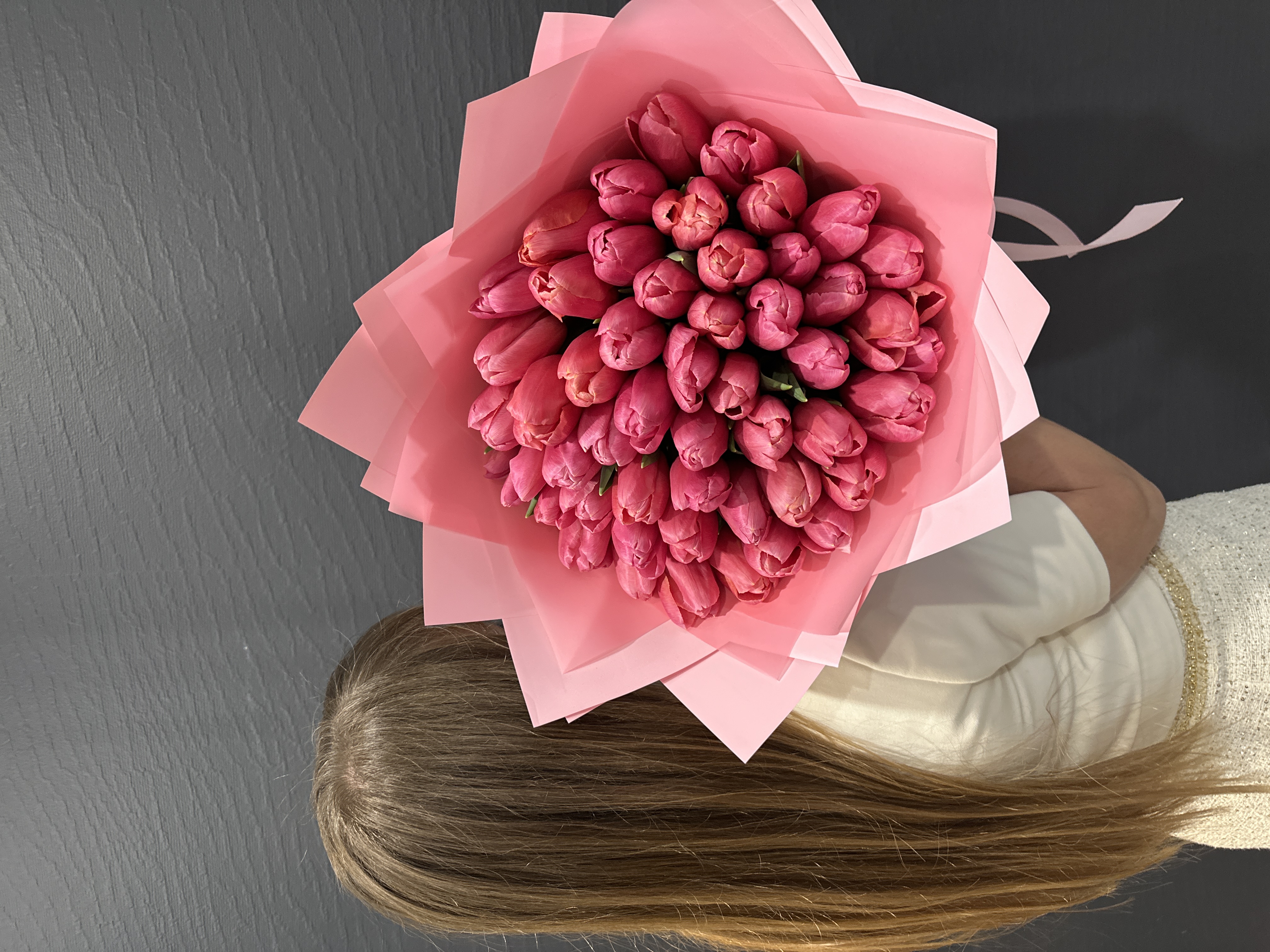 Букет из 51 розового тюльпана