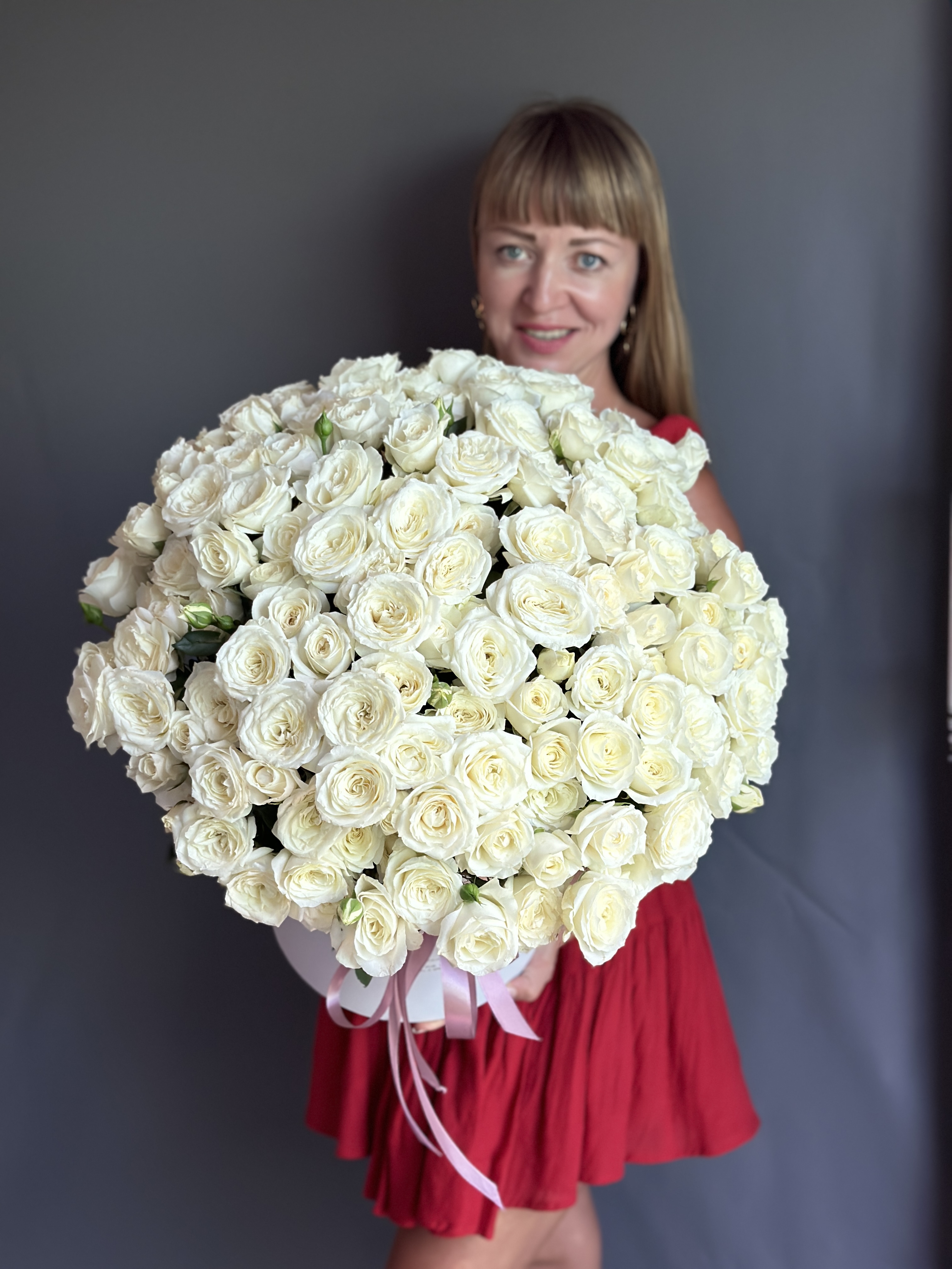 ภายในประกอบด้วยดอกกุหลาบพุ่มอันอ่อนโยนจำนวน **51 ดอก** ซึ่งเป็นสัญลักษณ์ของเสน่ห์และความงดงามที่ตราตรึงใจ ตกแต่งเพิ่มเติมด้วยกล่องทรงหมวกที่ทันสมัย ช่วยเสริมบรรยากาศให้สดใสและมีชีวิตชีวา